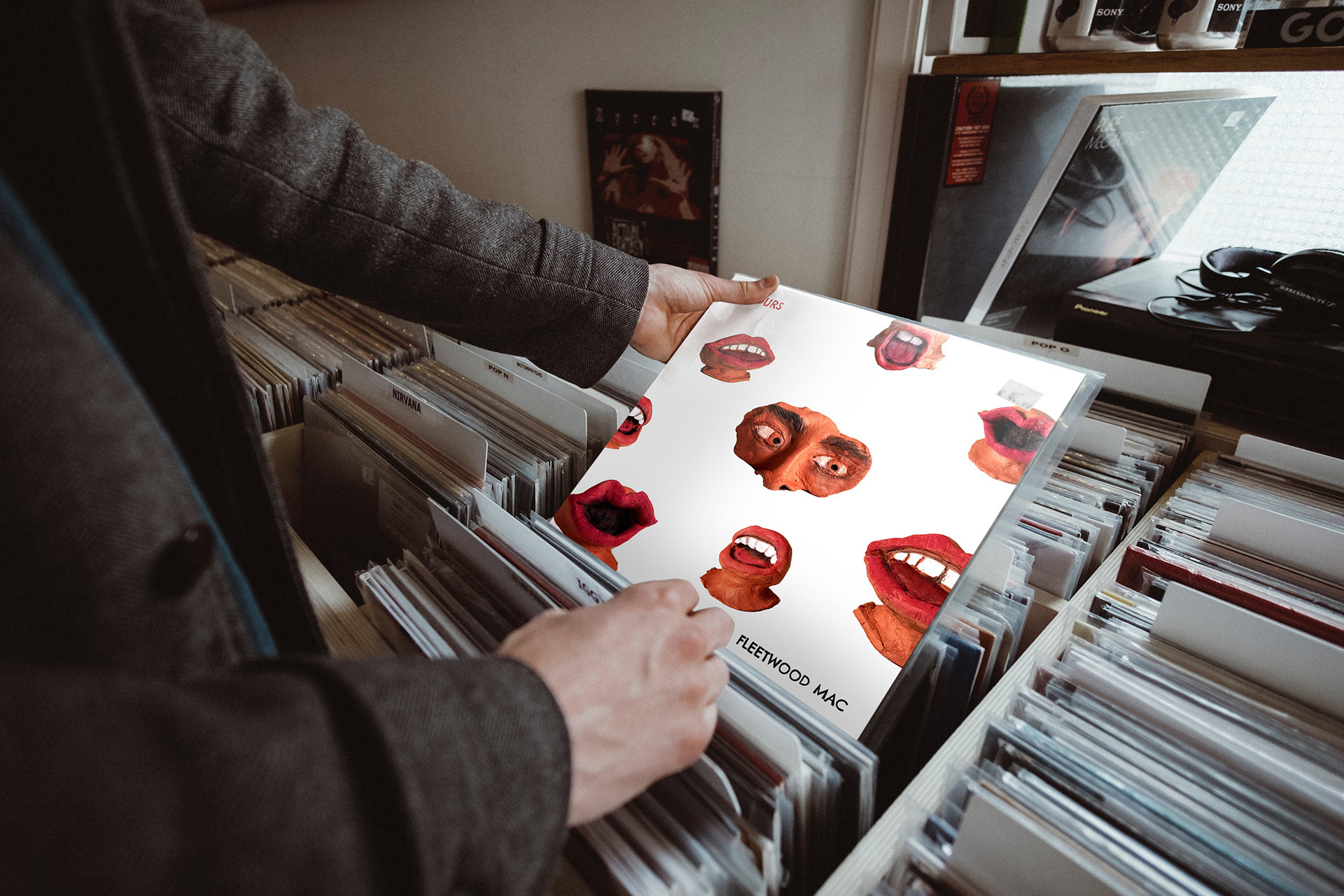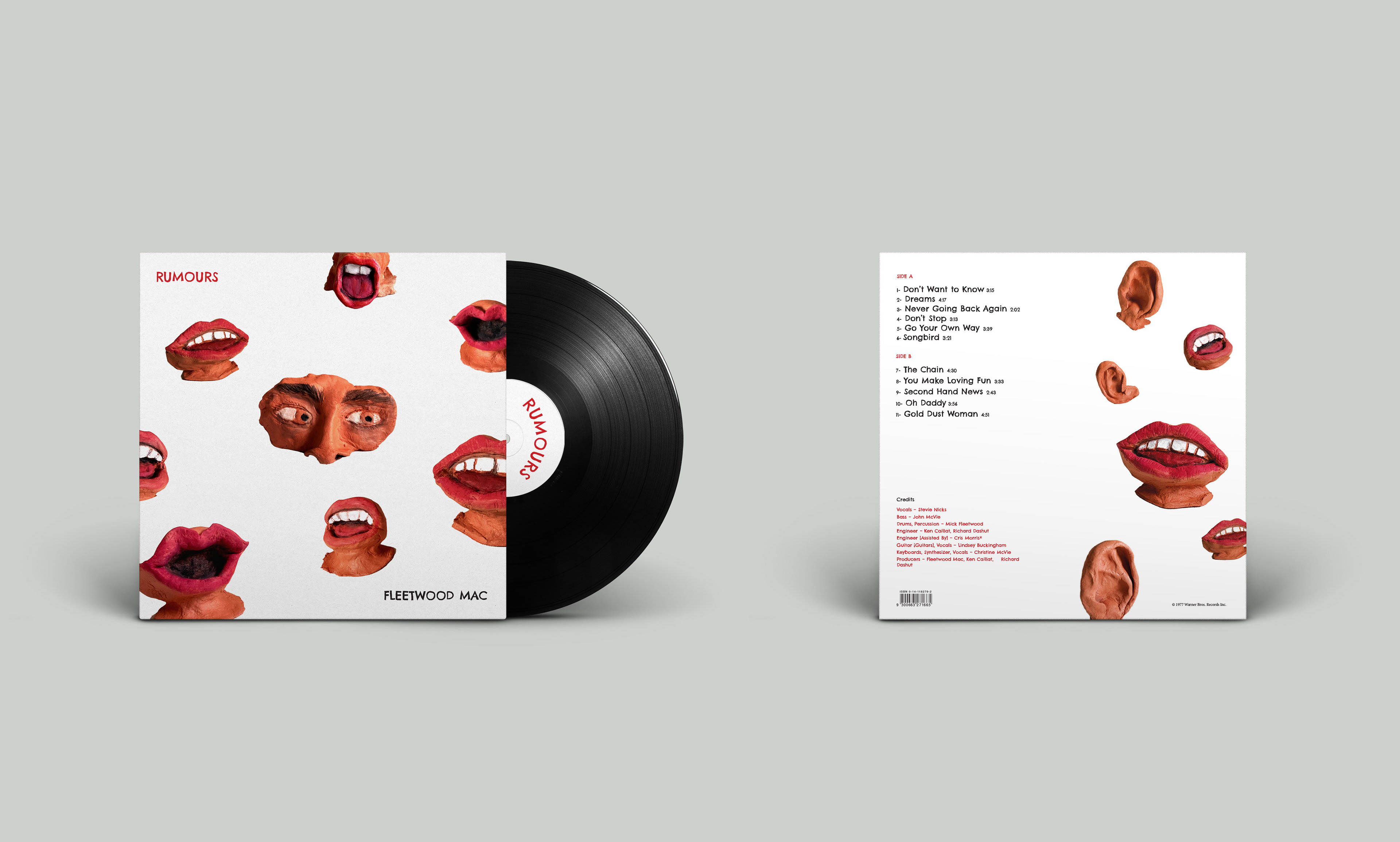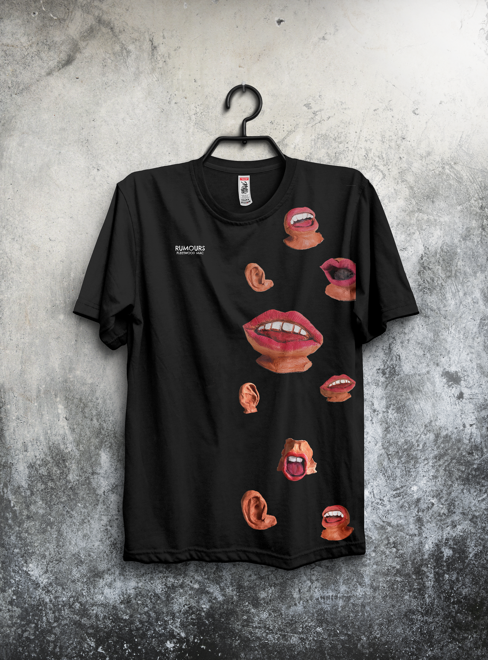 A reimagined album cover and merch for Rumours by Fleetwood Mac.