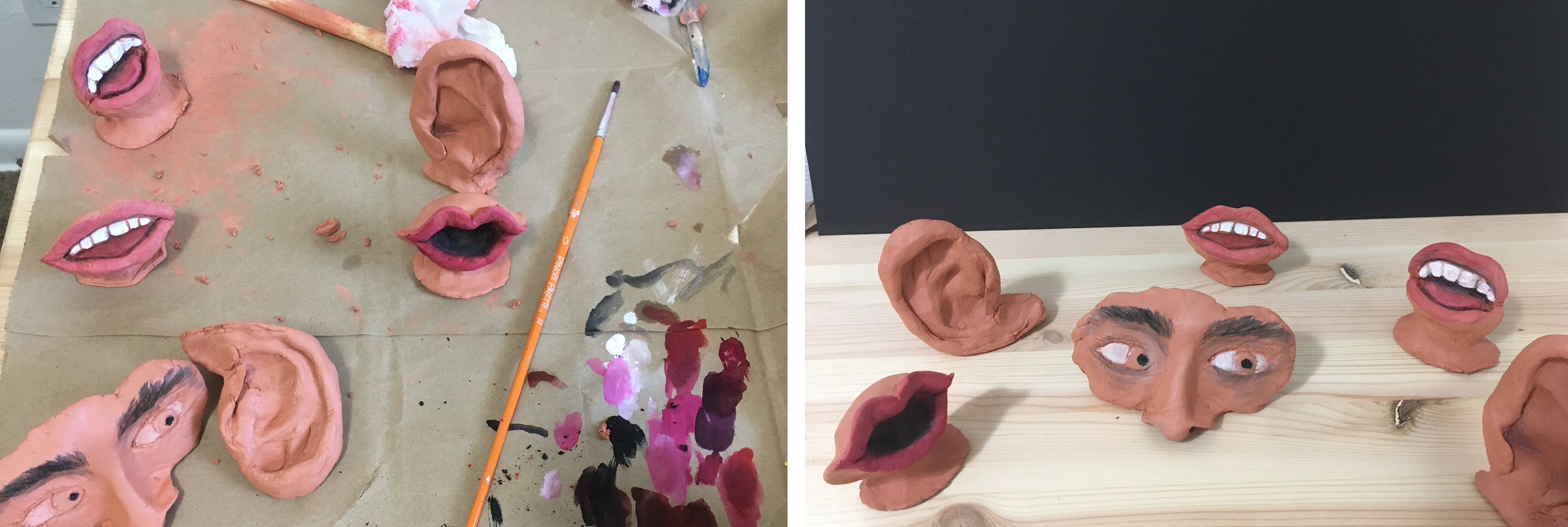 The features are hand built using modeling clay and paint.